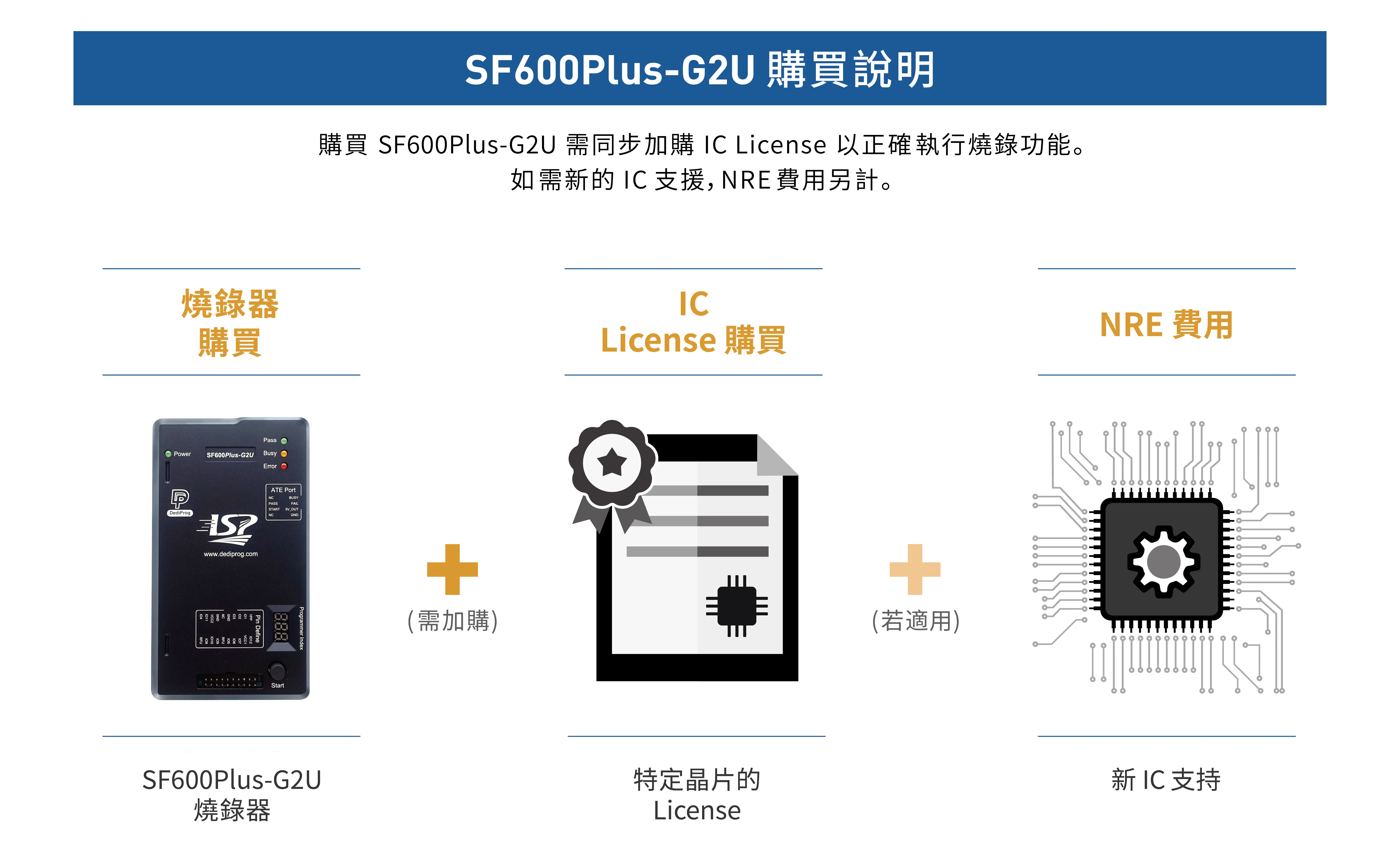 注意: * SF600Plus-G2U 完全兼容SPI Flash 燒錄器 SF600plus-G2,歡迎訪問 SF600Plus-G2 頁面 了解詳細規格。 * SF600Plus-G2U 僅供已購買 IC License 的使用者使用。如果您需要更多支援,請透過 [email protected] 與我們聯繫。 |