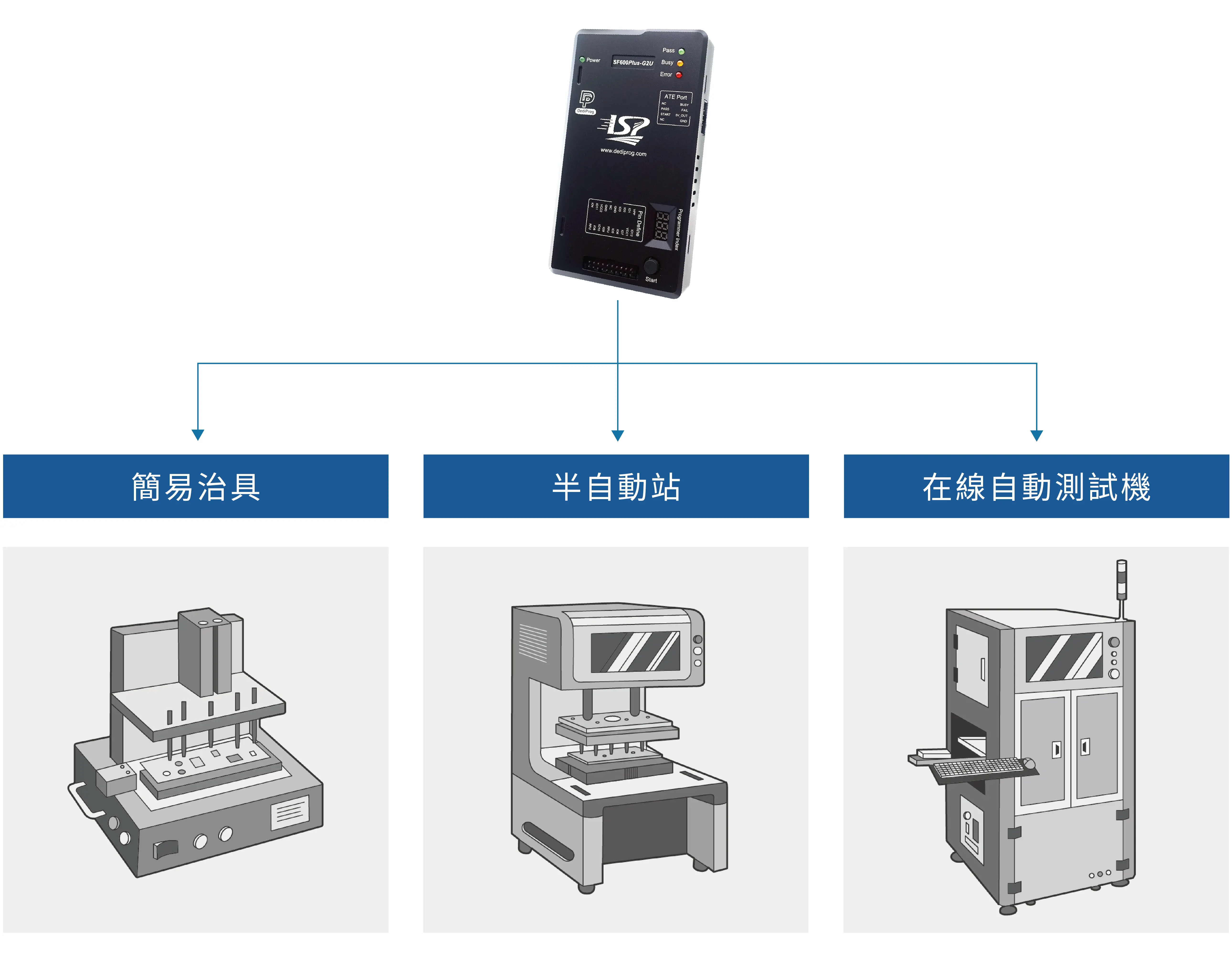 | 操作介面 | LED indicators display Power/Pass/Busy/Error status; Start button | ||